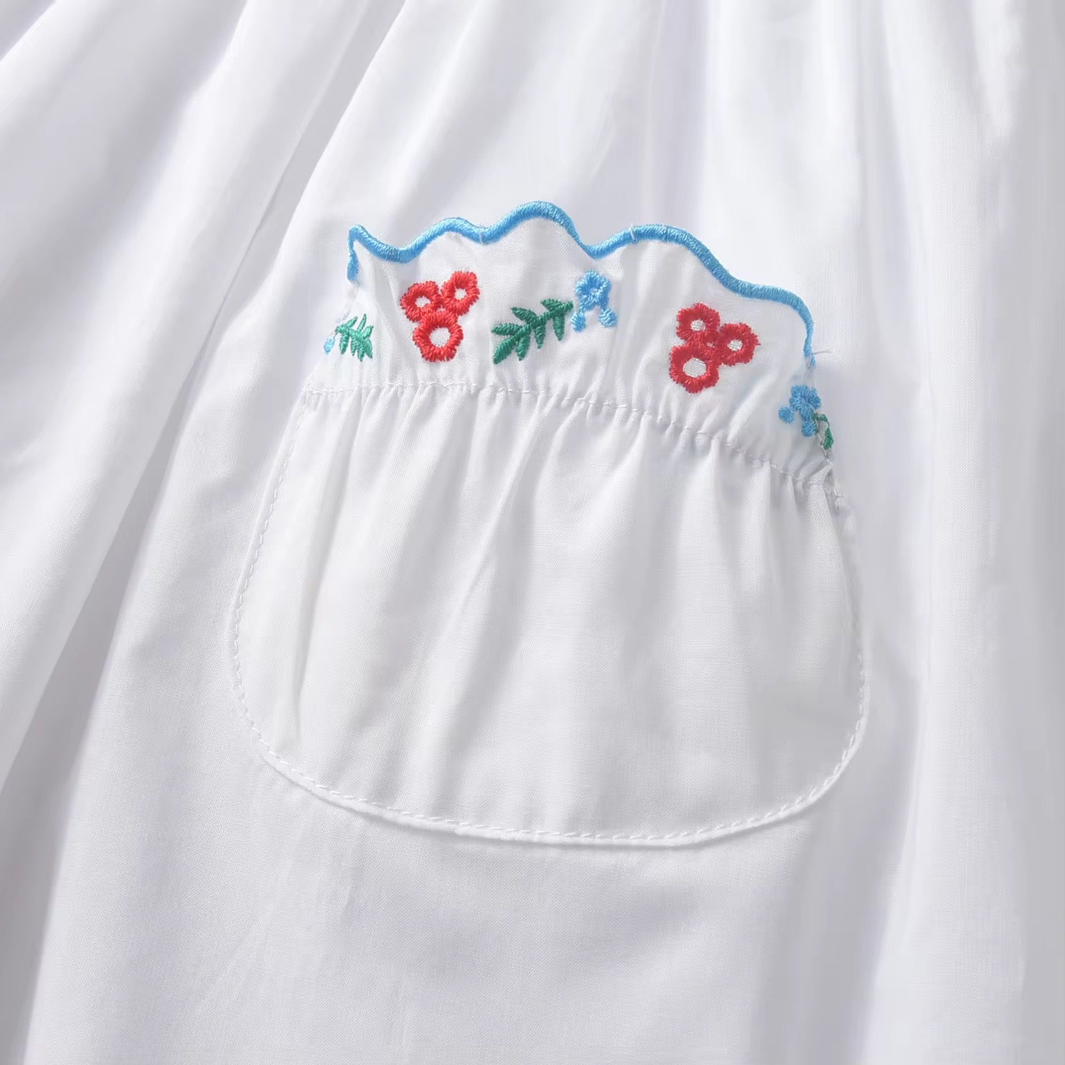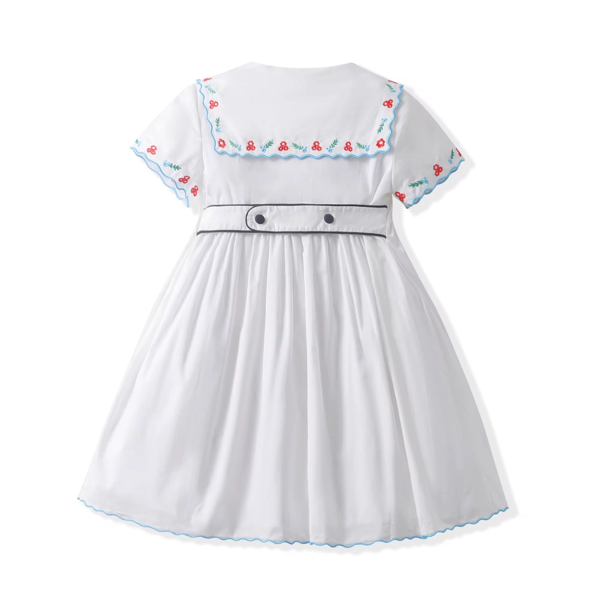 فستان قطن خفيف بتطريز زهري وفيونكة لطيفة.