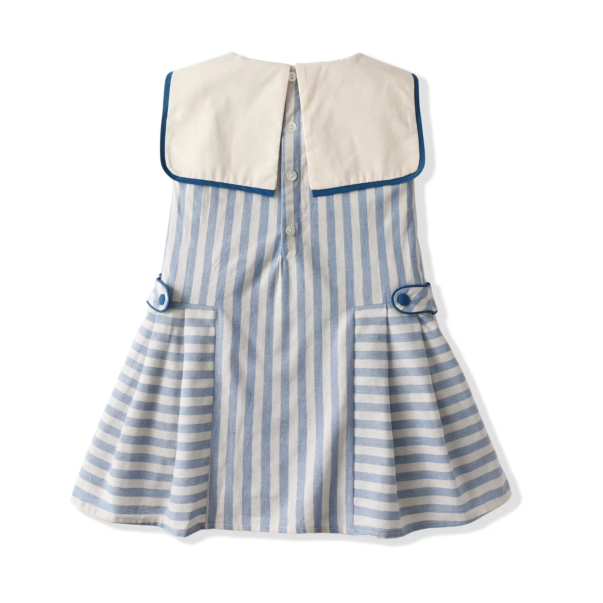 A cute striped dress with a sailor collar and a blue bow; simple, fresh, and perfect for sunny days 💙☀️